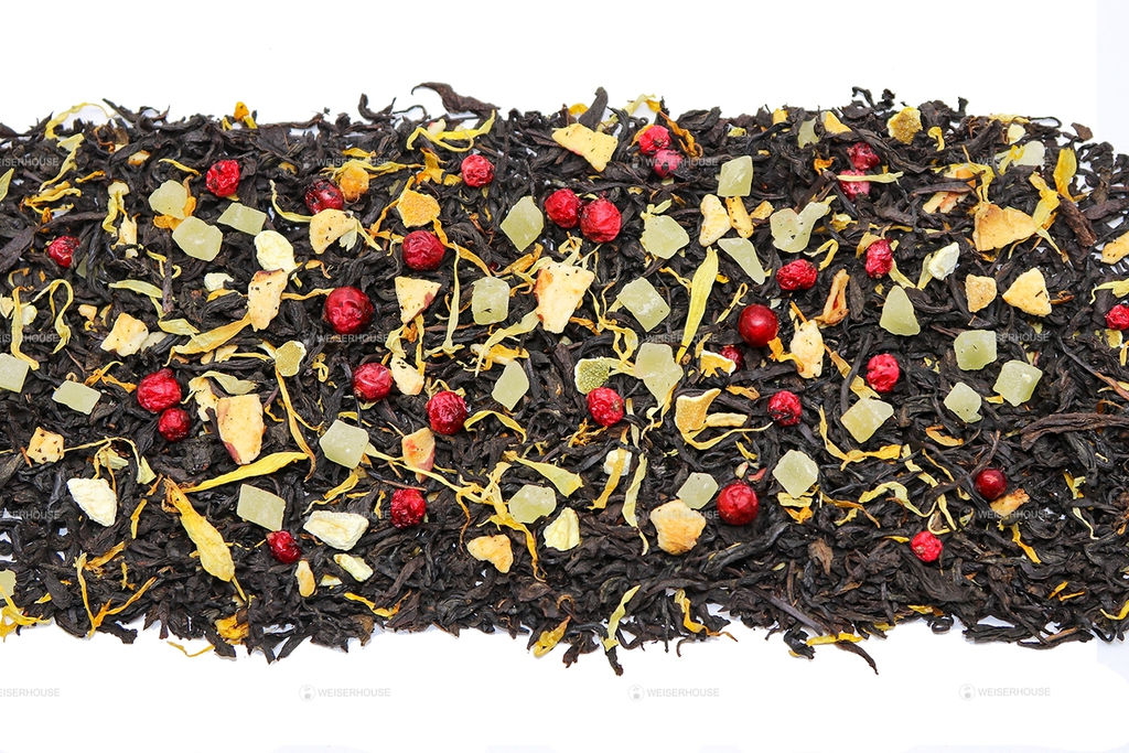 Индийский черный чай с кусочками ананаса и яблок, цедрой апельсина, лепестками календулы и ягодами брусники. Настой коричневого цвета с нежным, утончённым вкусом. Терпкий фруктовый аромат напомнит о тайных летних свиданиях и подарит хорошее настроение!