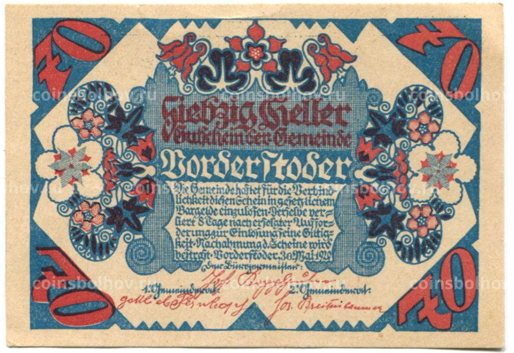 Банкнота 70 геллеров 1920 года Австрия Фордерштойдер (нотгельд)