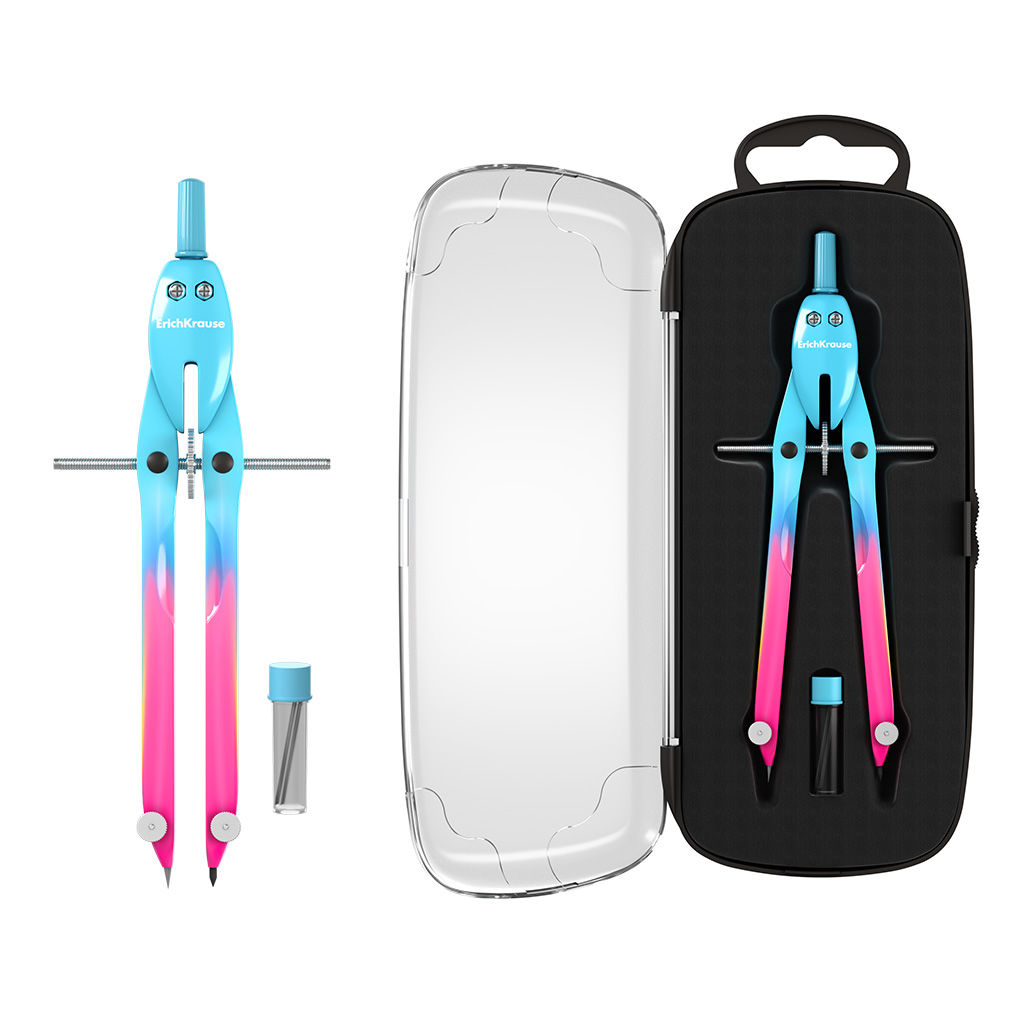 • АКЦИЯ Цена за 1 шт. Готовальня ErichKrause CoolRay, (металлический циркуль и сменные грифели), пенал, ассорти