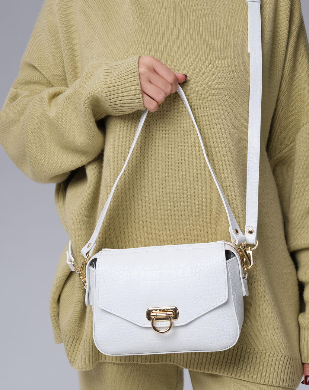Белая женская сумка через плечо Azaro 3684 белый/крок из натуральной кожи станет вашим идеальным спутником в повседневной жизни. Изящный дизайн и высококачественные материалы делают ее не только модным аксессуаром, но и практичным решением для хранения ваших важных вещей. Внутри расположено два кармана, на молнии и открытый карман для телефона и других мелочей. Водонепроницаемая подкладка сбережет изделие от повреждений. Сумка изготовлена из мягкой кожи, что обеспечивает приятные тактильные ощущения и долговечность. Средний размер сумки позволяет легко разместить все необходимые вещи: от кошелька и телефона до косметички и ключей. Сумка кросс-боди легко носится через плечо, что обеспечивает комфорт во время ношения. Наличие регулируемого ремня добавляет удобства, позволяя вам подстроить его под свои предпочтения. Натуральная кожа делает сумку износостойкой и легкой в уходе. Просто протирайте ее мягкой тканью, чтобы сохранить первоначальный вид и блеск. Эта женская сумка через плечо из натуральной кожи AZARO станет не только вашим надежным помощником, но и настоящим украшением гардероба. -- Характеристики -- Тип товара: Женские сумки Цвет: белый Материал: Замша натуральная, Натуральная кожа Бренд: Azaro Тип: Сумка на плечо, Сумка через плечо Страна-изготовитель: Россия Высота, см: 18 Ширина, см: 22 Глубина, см: 9 Материал подкладки: Хлопок Количество внутренних отделений: 1 Количество внешних карманов, шт: 2 Тип застежки: Магниты, Замок-вертушка Формат А4: не вмещает Высота ручек, см: 23 Длина плечевого ремня, см: 116 Вес товара, г: 570 Ручки: На плечо, На локоть, Плечевой ремень Пол: женская коллекция Группа товара: Сумки Выгружать товары на сайт: Да Количество внутренних карманов, шт: 2