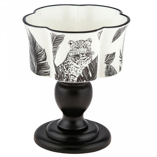 • "Палермо" Креманка фарфоровая "Леопард" 10,6х10,6х13см, 230мл, фигурная, на деревянной ножке, с деколью, отводка, в коробке (Китай)