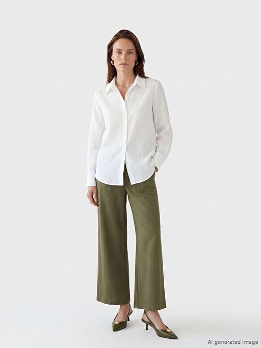 • Beli Lastikli Keten G?r?n?ml? Kad?n Pantolon