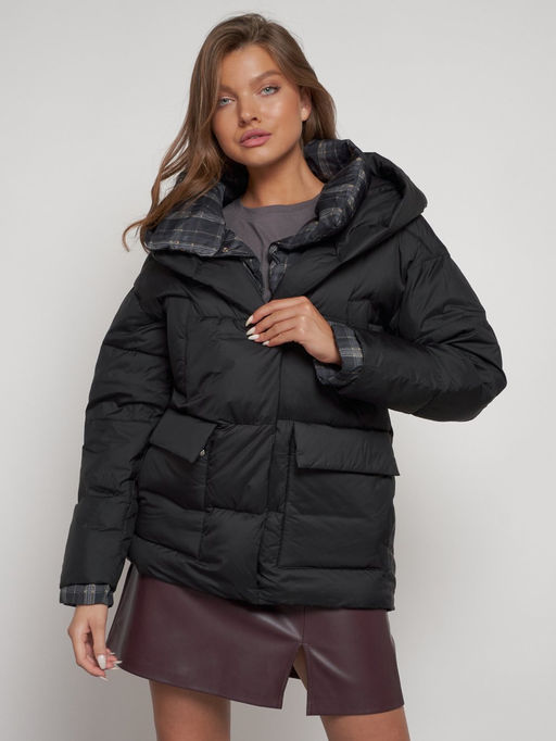 Название модели: Зимняя женская куртка модная с капюшоном черного цвета 133105Ch
