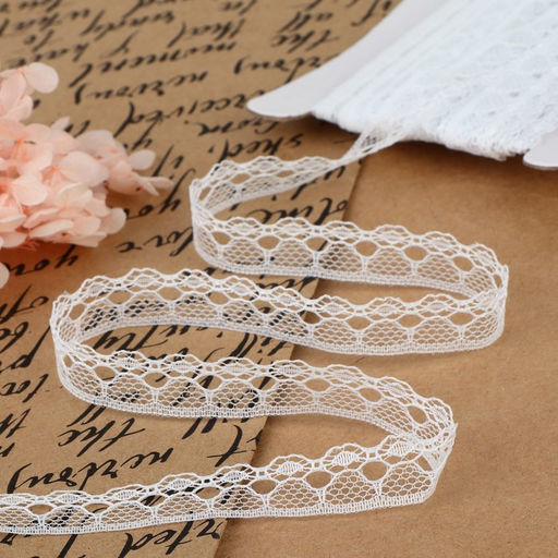 • Цена за 5 шт. Кружево капроновое, 14 мм, 10±1 м, цвет белый