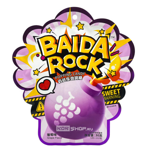 • Карамель взрывная со вкусом винограда Popping Candy Baida Rock, Китай, 30 г Акция