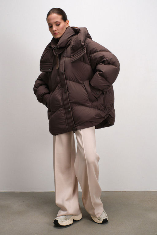Стильная куртка свободного силуэта, идеально подходящая для повседневных образов. Модель оснащена удобным капюшоном и воротником-стойкой, обеспечивающими дополнительную защиту от ветра. Втачные рукава с манжетами на кнопках и центральная молния, скрытая планкой с кнопками, добавляют функциональности. Наполнитель из пуха и пера гарантирует тепло и комфорт. Низ куртки регулируется с помощью кулиски, позволяя создать идеальную посадку.