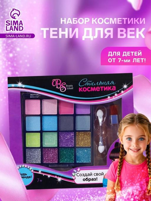 Детская косметика «Школа талантов» позволит ребёнку экспериментировать со стилем. Набор теней поможет девочке подобрать оптимальные варианты для вечерних и дневных образов. Косметика без труда смывается водой или с помощью ватного диска и безопасна для детской кожи.Составляющие набора:тени для век 8 цветов;тени для век с блёстками 8 цветов;кисточка, аппликатор.Состав: Ricinus Communis, Mioa, Lanolin, Cara, Alba, Ceresin, Cera camabua, Paraffinum Liquidium, Methylparabaen. Может содержать: CI 77007, CI 77288, CI 77491, CI 77492, CI 77742, CI 77891. Количество цветов: 16. Тематика праздника: 8 Марта. Тематика праздника: День рождения. Тематика праздника: Новый год. Темпер. ограничение НЕ НИЖЕ ℃: 0. Бесплатная доставка: Да. Наша разработка: Да. Размеры товара: 16.5/15/2.5. Примечание: Дата изготовления зависит от партии поставки.. Примечание: Косметика гипоаллергенна и безопасна для детей, легко смывается водой.. Примечание: Возможна индивидуальная непереносимость компонентов продукта. Рекомендуем проверить на аллергическую реакцию перед применением, нанеся средство на запястье или внутренний сгиб локтя.. Примечание: Хранение и транспортировка при температуре не ниже 0 °C.