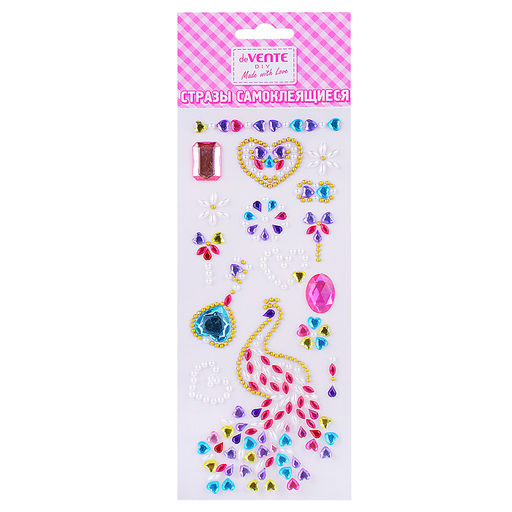 • Стразы самоклеящиеся "Firebird" акриловые, карточка 7,5x18 cм, цвета ассорти, в пластиковом пакете с блистерным подвесом