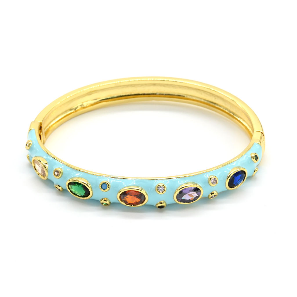 Браслет круглый с эмалью и цирконами цв.голубой, 16,5см