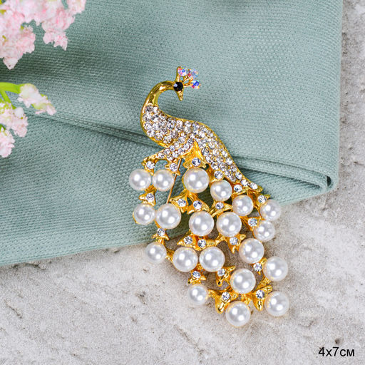 • Брошь Павлин с жемчугом / GM346 /уп 24/