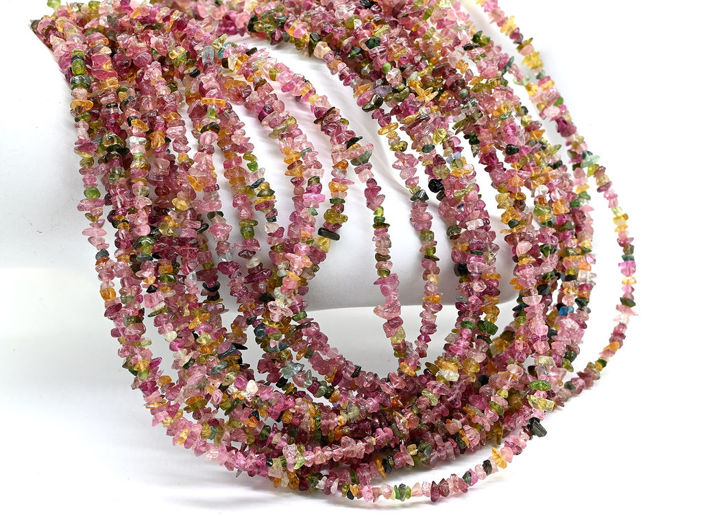 Бусины из натурального камня турмалин в форме крошки.