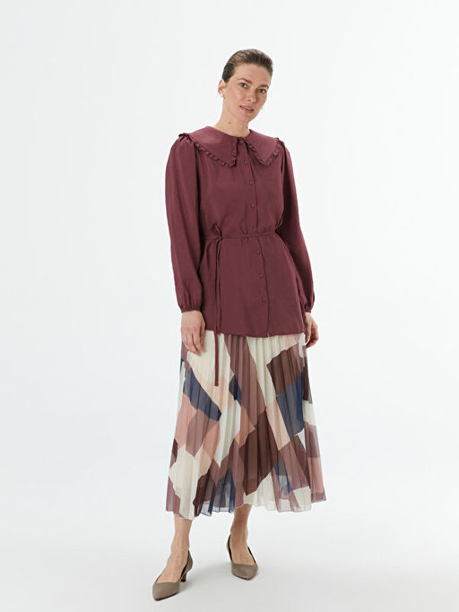 • Beli Lastikli Desenli Kad?n Pileli Etek
