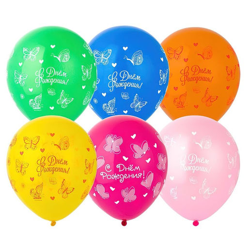 • Шар латексный 12" "ДР бабочки и сердцами", шелкография,  набор 25 шт.