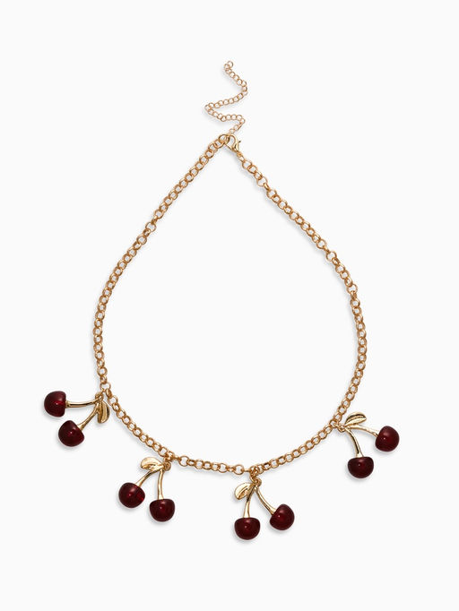 • Цепь с подвесками "Вишня", 40+удл, цвет бордовый в золоте