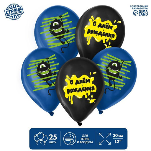 Набор: Да. Диаметр, дюйм: 12. В наборе, шт.: 25. Адресат: Именинник. Тематика рисунка: День Рождения. Вид шара: Классический. Надувка шара: Гелием. Надувка шара: Воздухом. Язык надписи: Русский. Бесплатная доставка: Да. Наша разработка: Да.