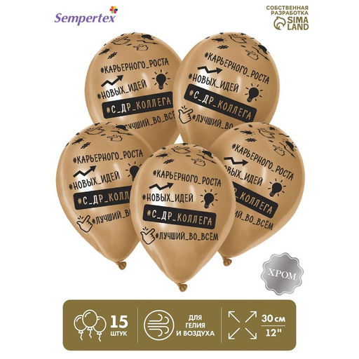 • Воздушные шары латексные 12" «Лучший во всем», 15 шт., хром