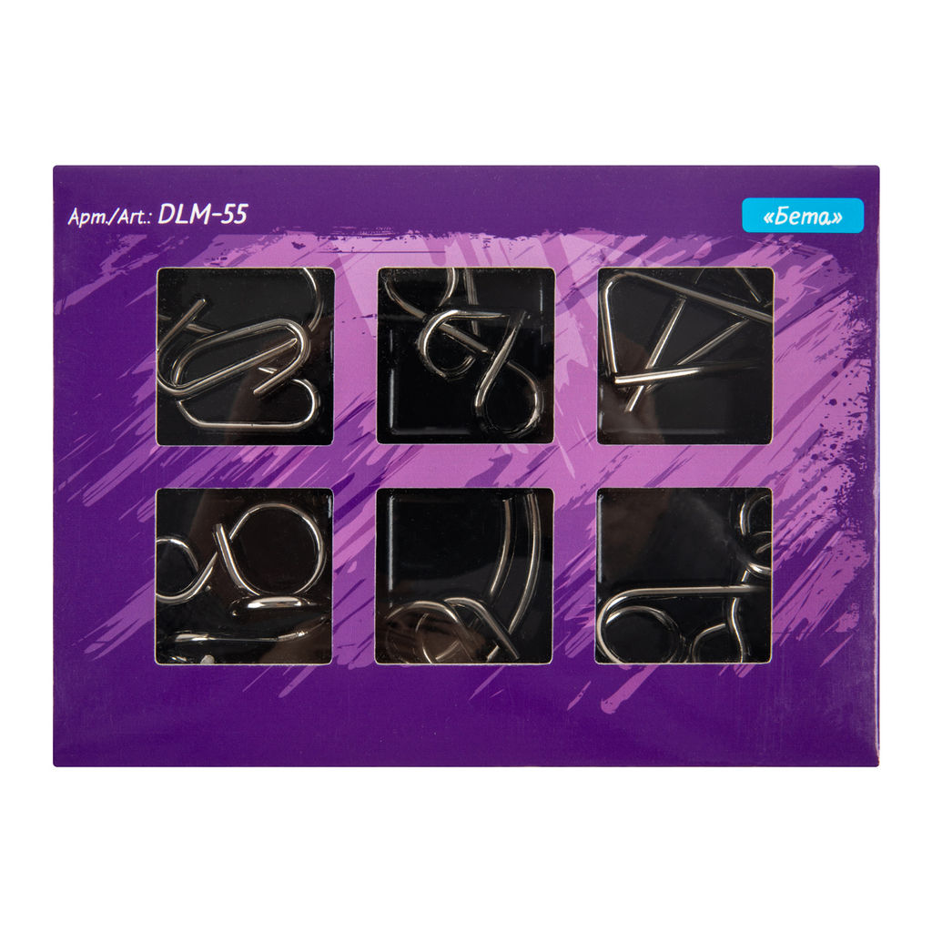 Описание Набор металлических головоломок ТМ DELFBRICK арт. DLM-55- это набор игрушек, состоящих, как правило, из нескольких частей, которые надо разобрать и снова собрать, решив, таким образом, некую логическую задачу. Головоломки ТМ DELFBRICK - отличный тренажер для развития сообразительности и ловкости, логического мышления и терпения. Логические игры ТМ DELFBRICK - это занимательный досуг для взрослых и детей от 3 лет. Каждая головоломка изготовлена из качественных и нетоксичных материалов. В комплекте: стальные детали, сцепленные между собой. Упаковка: картонная коробка. Инструкция на оборотной стороне этикетки. В наборе 6 шт.Обязательный