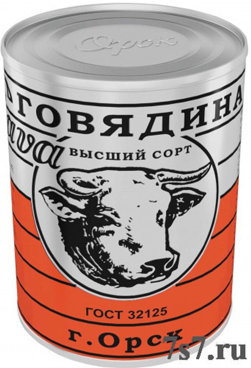 • Тушенка говядина "Орск" Слава" в/с ж/б 338гр*20шт/уп ГОСТ(12.01.2023)