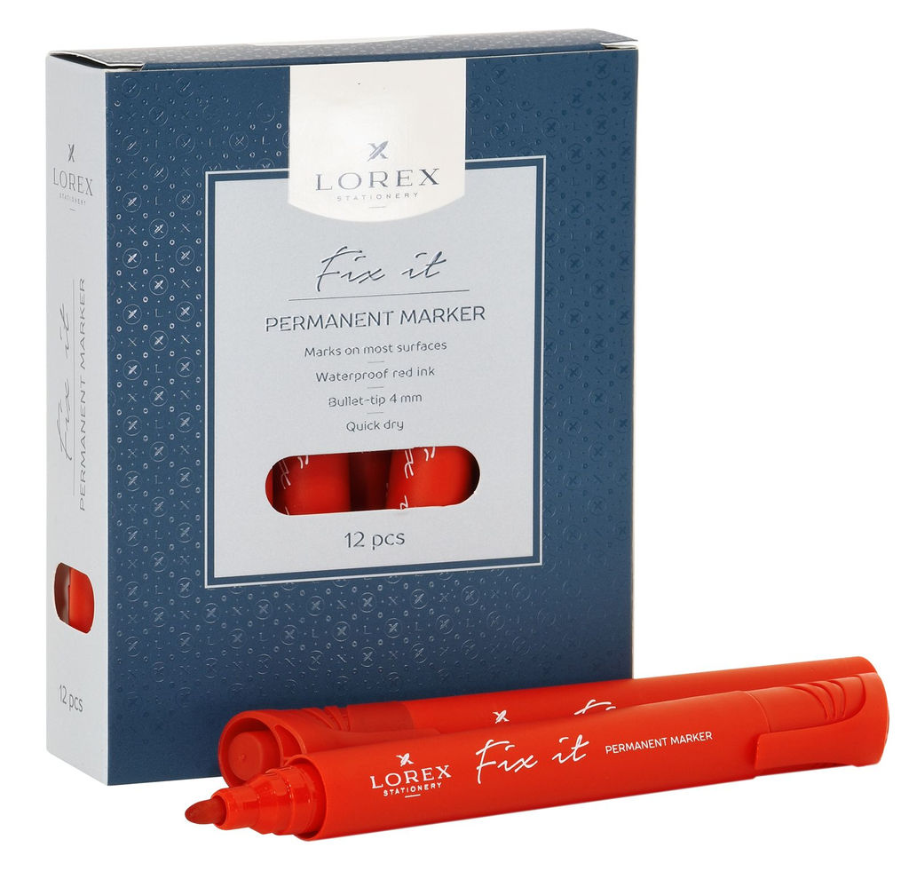 • Цена за 2 шт. Маркер перманентный LOREX FIX IT 1-4 мм красный, круглый наконечник