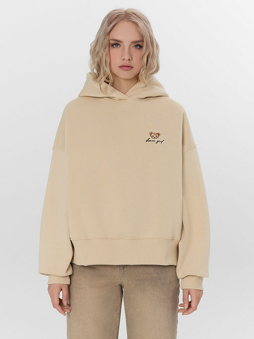 Бежевое теплое худи с начесом и надписью Девушка-мечта это уют и расслабленный стиль для прохладных дней. Оно выполнено из плотного футера с начесом, который сохраняет тепло, обеспечивает мягкость и комфорт при носке.