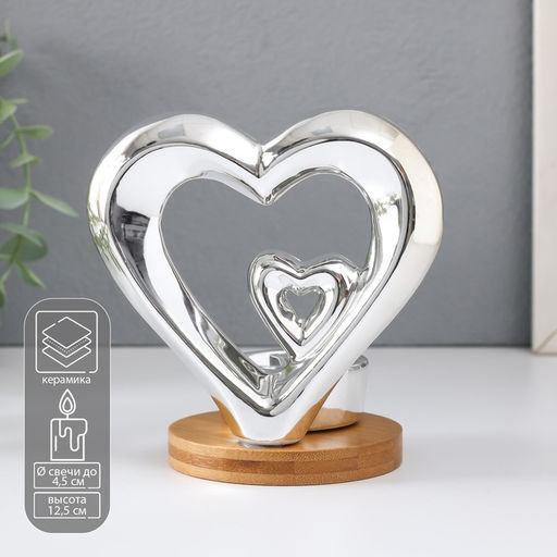 • Подсвечник на 1 свечу Два сердца, серебро, 11?8?12.5 см