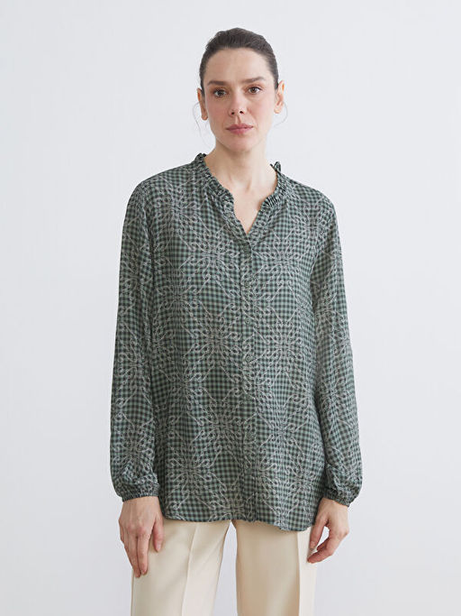 • Ka??k Yaka Desenli Kad?n G?mlek