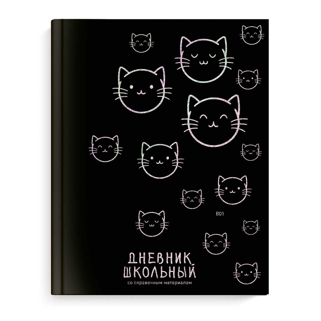 Дневник школьный арт. 66850 КОТЫ / твёрдый переплёт, А5+, 48 л., голографическая фольга, глянцевая ламинация, печать в одну краску, универсальная шпаргалка/