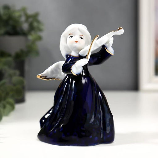 Фигурка керамика под фарфор Ангелочек со скрипкой, кобальт, 12.5?10?8 см