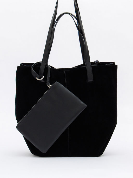 Стильная модель с альтернативными ручками, выполнена из замши. Дополнена серебристой фурнитурой. Данная модель закрывается на кнопку. Каркас мягкий. Носится в руке или на плече за короткие или длинные ручки. В комплекте имеется косметичка.
