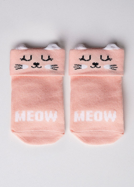 ясельные носки для девочки с мордочкой кошки и 3Д ушками, по следу нанесены силиконовые стоперы 80% хлопок, 18% полиамид, 2% эластан
