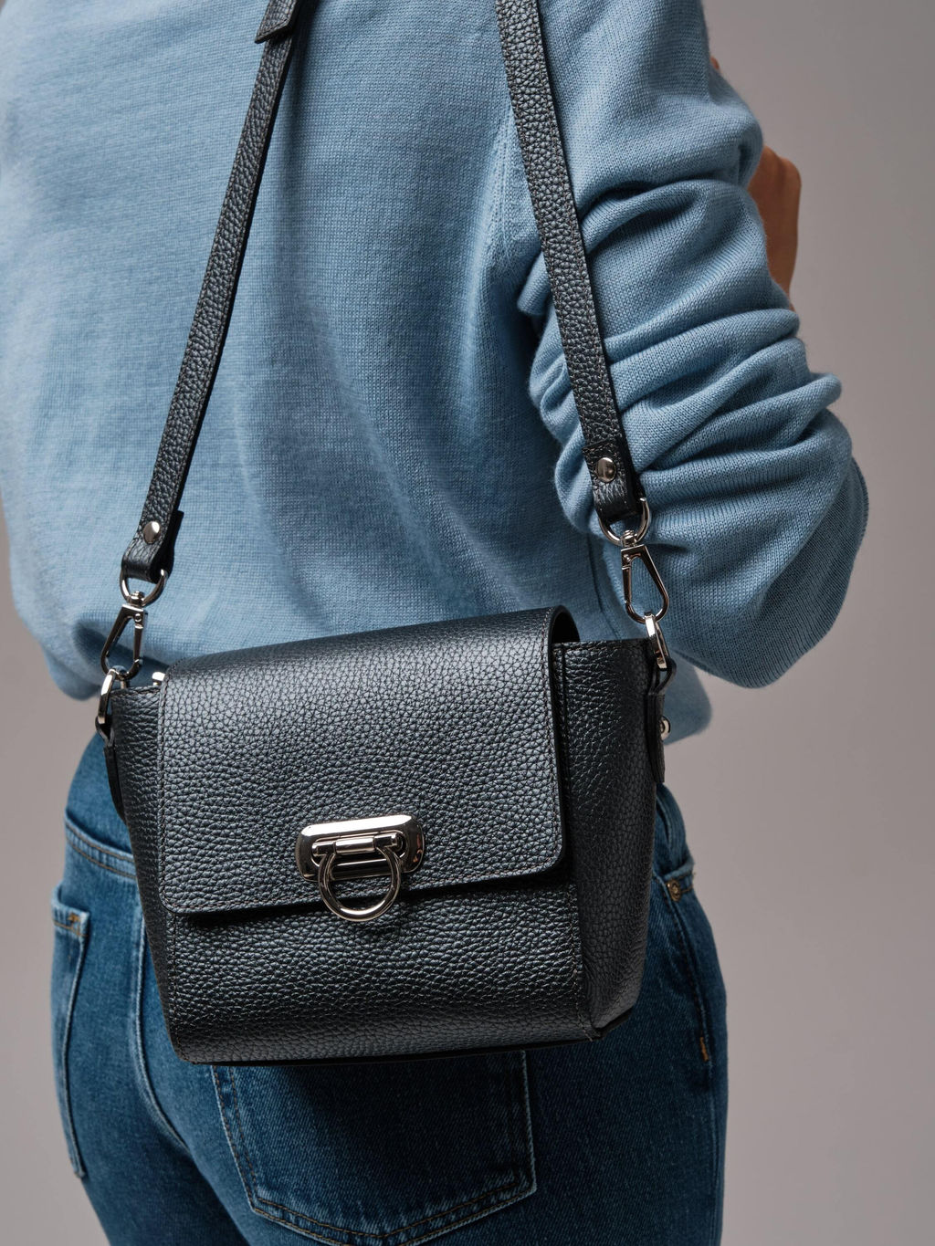 Женская кожаная сумка кросс-боди Azaro 3520 черный металлик - стильный акцент для тех, кто ценит лаконичность и качество. Детали: натуральная кожа, внутренняя отделка клапана из натуральной замши, съемный регулируемый ремень, 1 внутреннее отделение, 2 внутренних кармана - на молнии и открытый, застежка на молнию и замок-вертушку. Выполненная из натуральной кожи, эта сумка кроссбоди обладает выразительной текстурой и безупречным исполнением. Перламутровый оттенок, глубокий и насыщенный, придаёт образу утончённость и элегантность. Этот цвет идеально сочетается как с нейтральными, так и с контрастными тонами, делая сумку универсальной деталью гардероба. Компактная форма и функциональный дизайн обеспечивают комфорт в повседневном использовании, а металлическая фурнитура в серебристом тоне добавляет современного шика. Сумка станет стильным завершением образа и подчеркнёт безупречный вкус своей обладательницы. -- Характеристики -- Тип товара: Женские сумки Цвет: черный/металик Материал: Натуральная кожа Бренд: Azaro Тип: Сумка через плечо Страна-изготовитель: Россия Высота, см: 14 Ширина, см: 21 Глубина, см: 10 Материал подкладки: Хлопок Количество внутренних отделений: 1 Тип застежки: Молния, Зажим Формат А4: не вмещает Длина плечевого ремня, см: 116 Ручки: Плечевой ремень, Одна лямка Пол: женская коллекция Количество внутренних карманов, шт: 2
