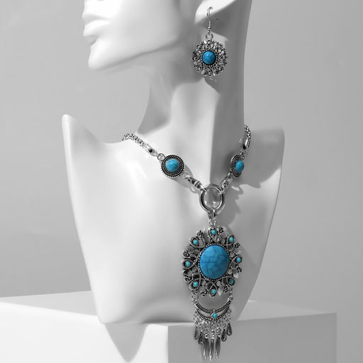 • Набор 2 предмета: серьги, колье «Индия», цвет голубой в чернёном серебре, 50 см