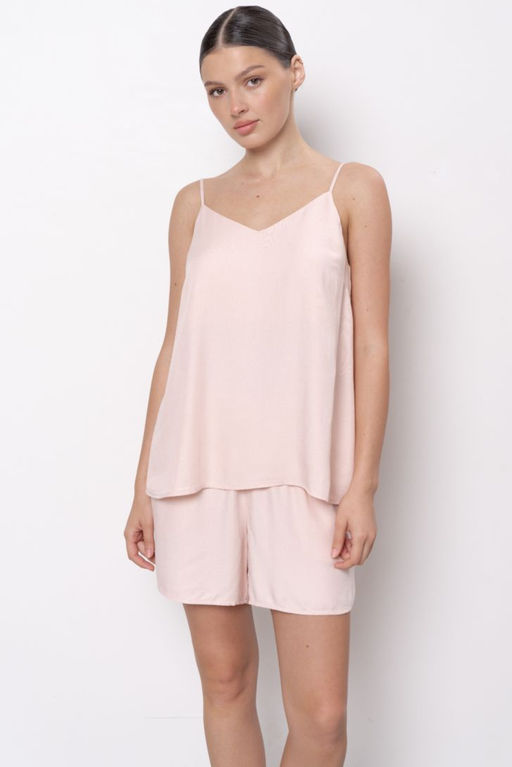 Вискоза 100% Пижама состоит из топа свободного прилегания на регулируемых бретелях и свободных шорт. Вырез горловины топа V- образный. Для большего комфорта и удобной посадки предусмотрены вытачки по линии груди. Шорты на мягком поясе с кулисой. В боковых швах функциональные карманы. Модель представлена в двух цветовых решениях. ENIGMA/Энигма