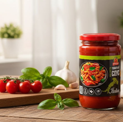 Состав: Томаты, томатная паста, сахар, соль, масло подсолнечное, базилик, орегано, лук, перец чёрный молотый, перец чили