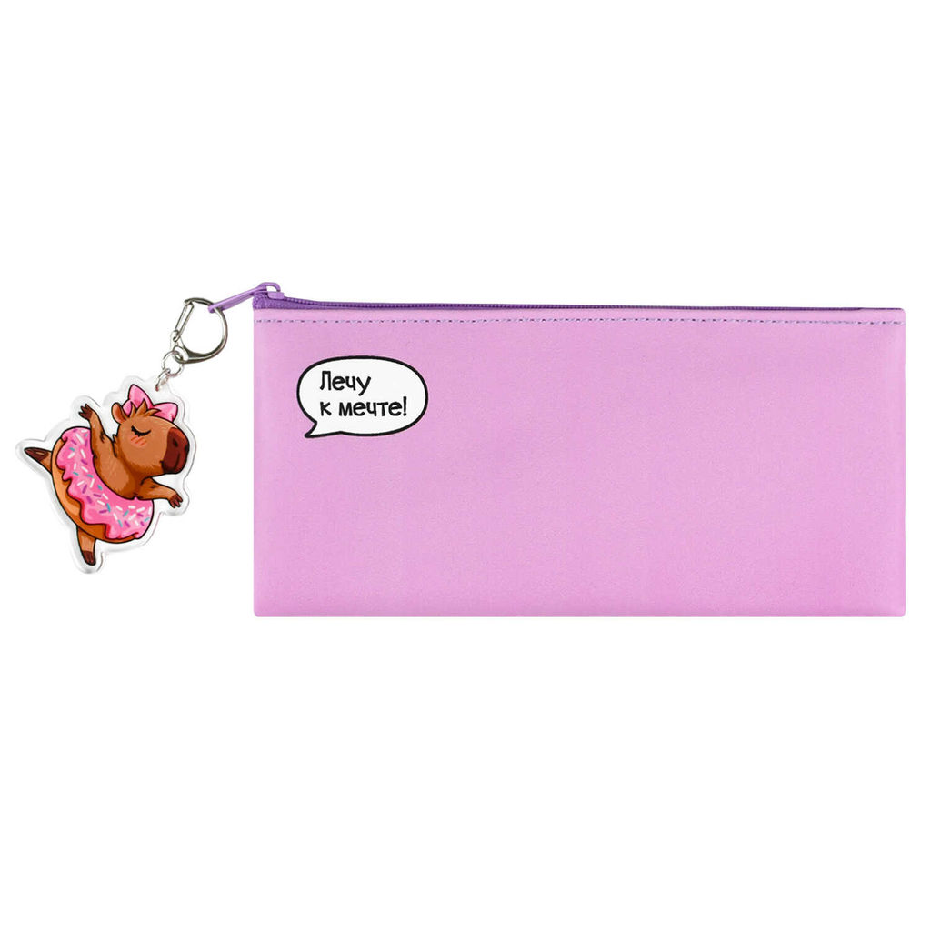 Пенал школьный Феникс+, арт.71956/ 48 КАПИБАРА ЛЕТИТ (брелок в комплекте, 19.5х9 см, искусственная кожа, молния, шелкография в две краски, ПЭТ-пакет с европодвесом и картонным вкладышем).