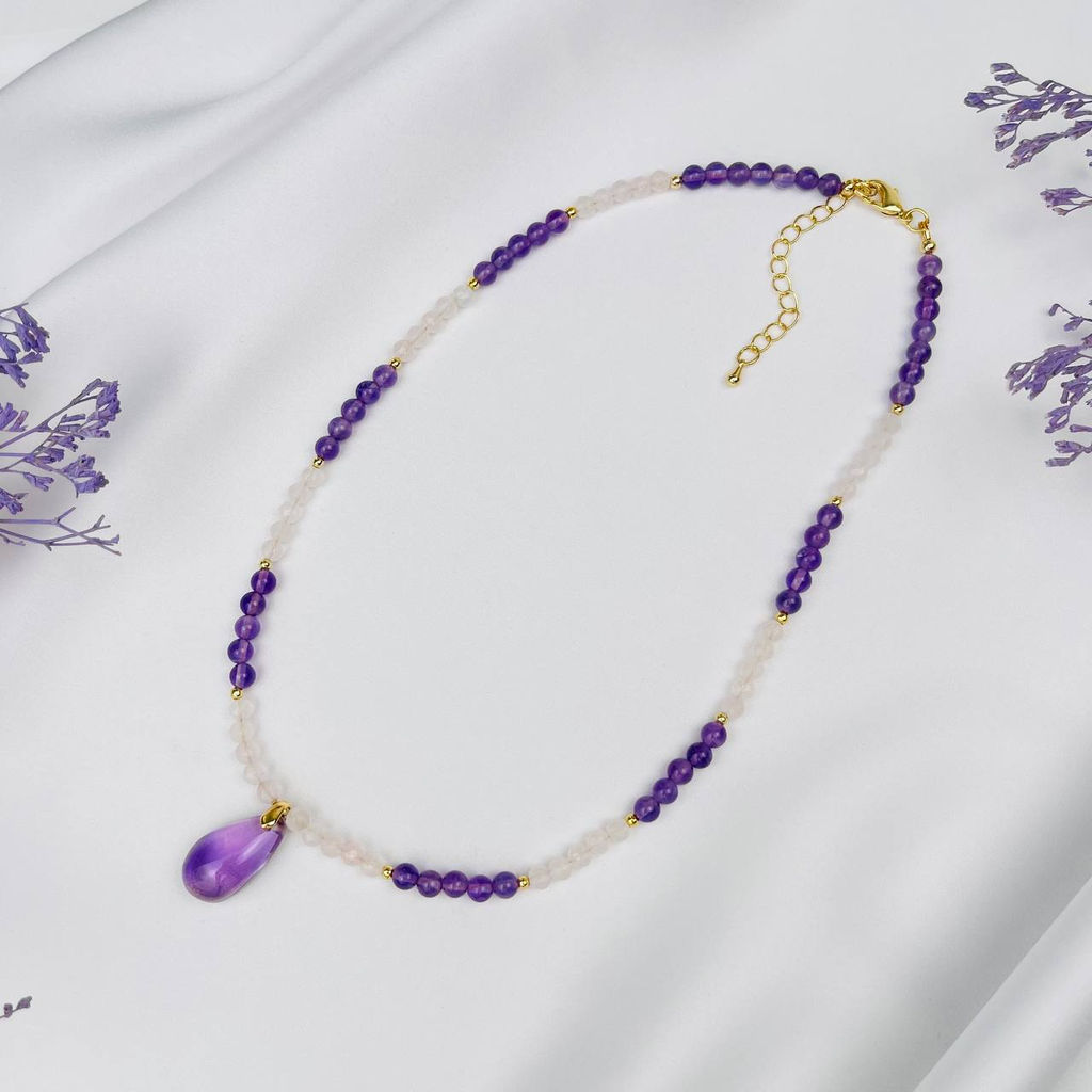 Колье "Венера & Сатурн" из Аметиста и Розового кварца 42 см +