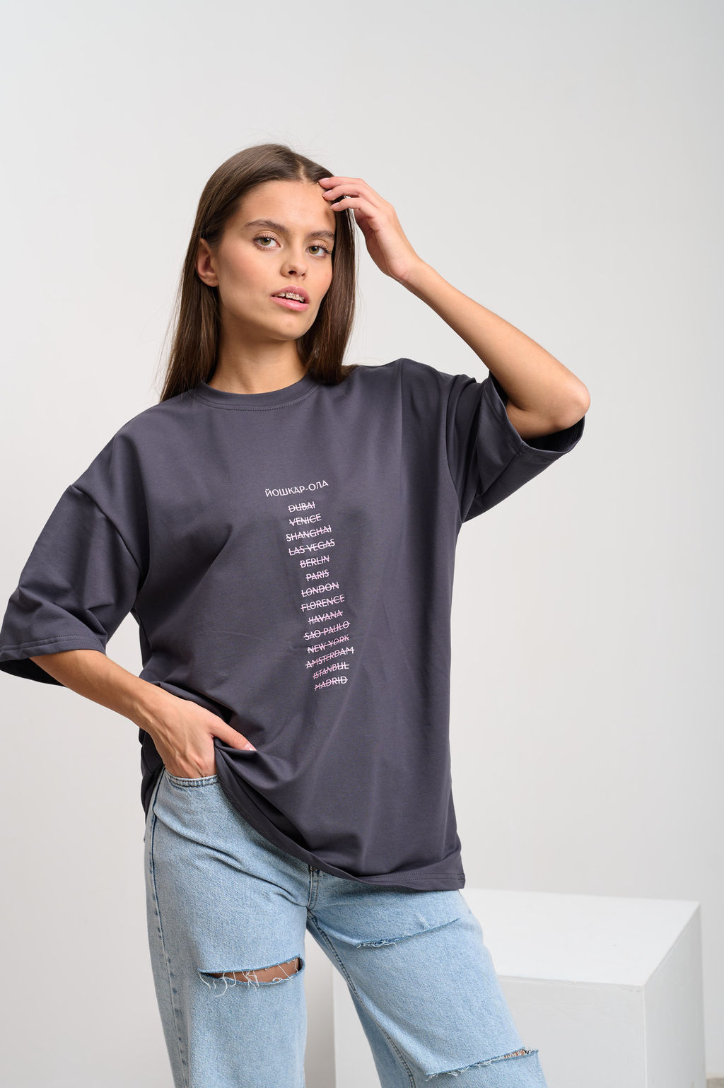 Футболка женская оверсайз серый "Зачеркнутые города"