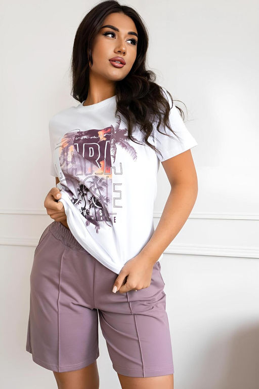 Комплект двойка дает Вам возможность выглядеть ярко и выразительно, но при этом комфортно и стильно. Оверсайз крой этого летнего костюма дарит ощущение свободы и легкости, не сковывает телодвижения. Домашний костюм женский позволит Вам чувствовать себя уверенно, подчеркивая все достоинства Вашей фигуры.