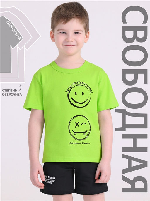 футболка,хлопок 100%,кулир / хлопок 100%,ярко-салатовый262 / - / Скейтборд / - / - / -,Футболка для мальчика выполнена из кулира легкого хлопкового плотна. Изделие прямого силуэта и свободного кроя, с короткими рукавами со спущенной линией плеча, вырез горловины обработан эластичной бейкой из полотна компаньона. Футболка украшена ярким стильным принтом. Уход: только машинная стирка (руками не стирать!) при температуре 40 градусов, без предварительного замачивания. Изделия с печатью и декором перед стиркой необходимо вывернуть на изнаночную сторону.