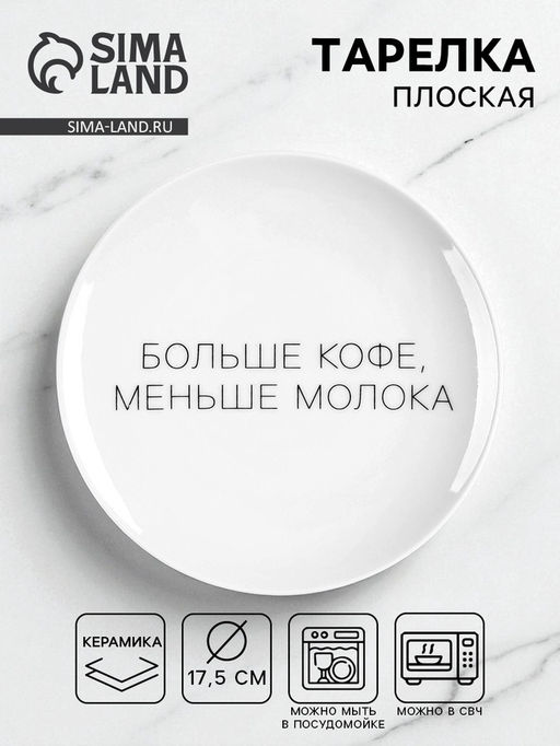 • Тарелка плоская керамическая «Больше кофе, меньше молока», d=17.5 см