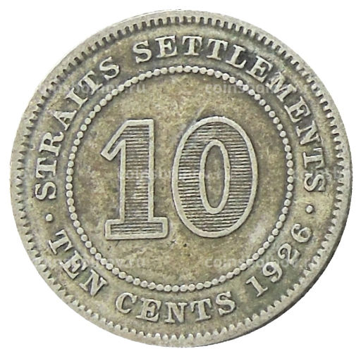 Монета 10 центов 1926 года Стрейтс Сетлментс