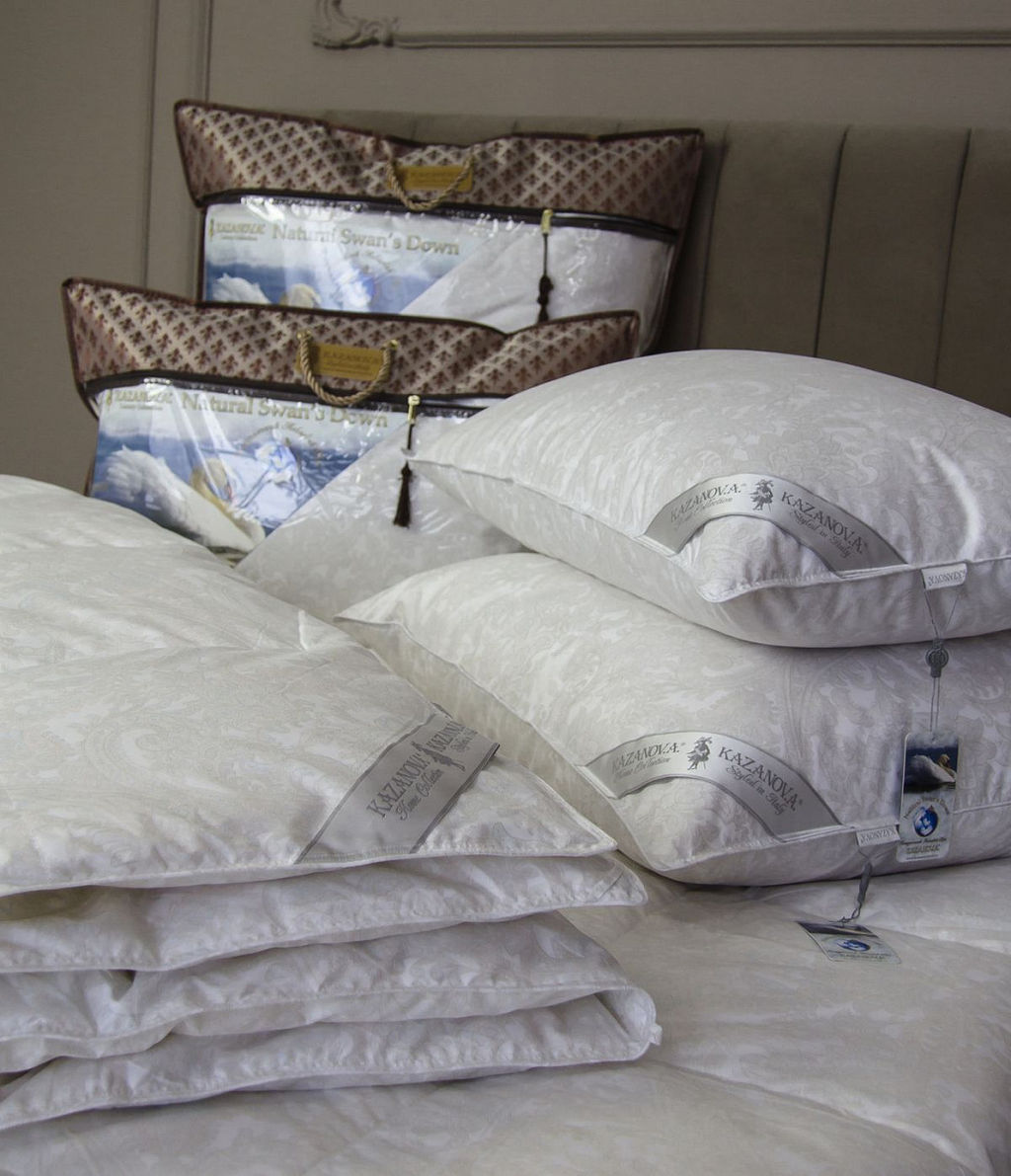Коллекция "Натуральный Лебяжий Пух" выполнена из высококачественного пуха высшей категории. Чехол одеяла и подушки изготовлен из сатин-велюра с лазерным напылением в виде изысканного орнамента. Ткань пуходержащая, с бархатистой поверхностью исключает скольжение одеял и подушек в пододеяльниках и наволочках. Элементами отделки служат: отделочный кант, тканая шелковистая угловая лента и лейбл. Подушки 50*70, 70*70 упакованы в жаккардовой сумке с витыми шелковыми ручками. Одеяла - 155х210, 200х220 в подарочных коробках с ручками из витого шнура.