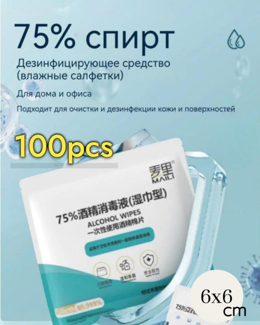 Спиртовые салфетки, 60х60 мм, медицинские, влажные салфетки, антисептические, антибактериальные, одноразовые 100 шт