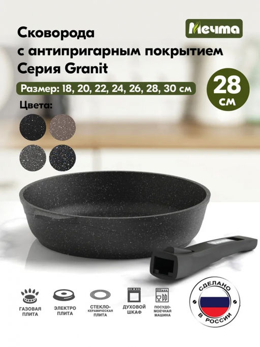 • ГРАНИТ BLACK Сковорода 28 см со съемной ручкой, арт. 028802