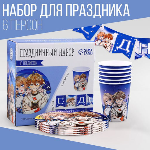 • Набор бумажной посуды одноразовый Аниме»: 6 тарелок, 1 гирлянда, 6 стаканов