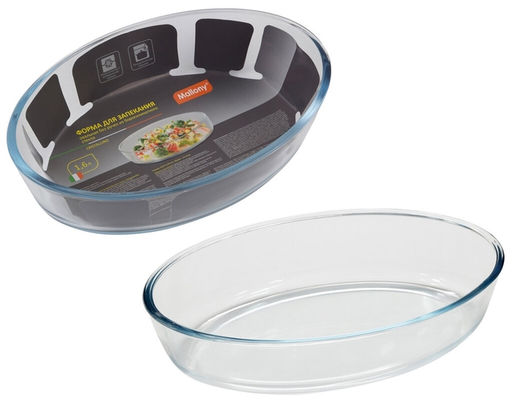Форма для запекания из боросилекатного стекла 1,6 л, овальной формы без ручек, серия Cristallino, тм Mallony.