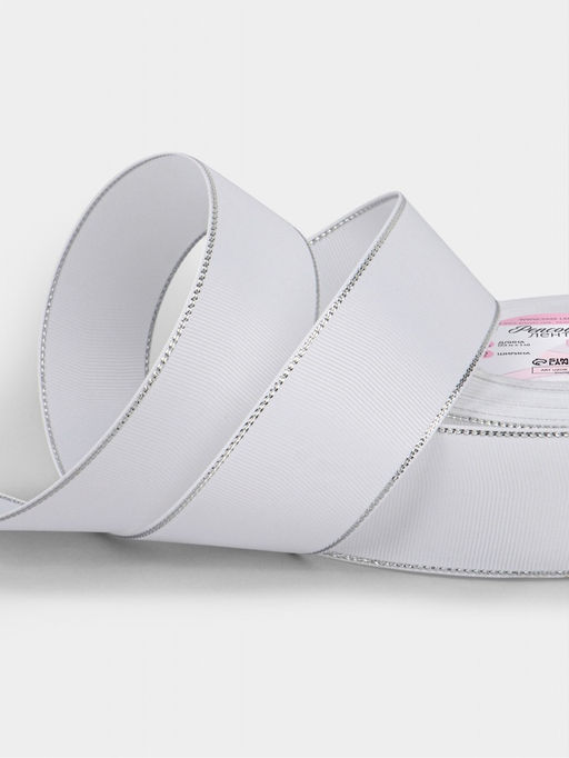 • Лента репсовая, с серебряным люрексом, 40 мм, 23±1 м, белая №001