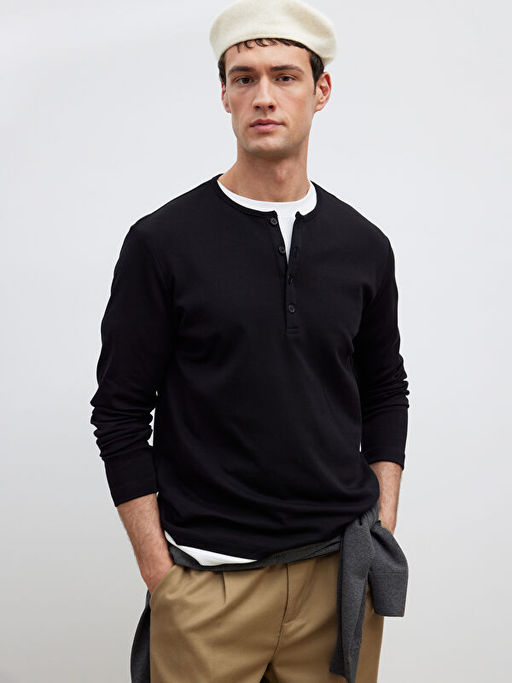 D??meli Bisiklet Yaka Yaka Uzun Kollu Erkek Ti??rt