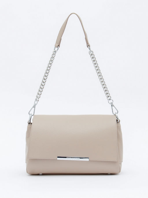 Сумка кросс-боди, выполнена из натуральной кожи. Декорирована логотипом. Дополнена серебристой фурнитурой.  Данная модель закрывается на клапан. Носится в руке за съемную ручку или на плече, съемный ремень регулируется по длине. Каркас полужесткий.