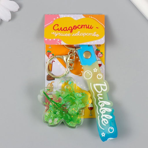 • Брелок для ключей с карабином, ремешком «Цветочек с ракушками», пластик, водный с декором, 1.8×5.3×5.6 см